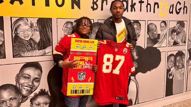KANSAS CITY, Mo. (KCTV) – Kansas City Chiefs tight end Travis Kelce gave a special gift to Javion Mahone – one of the first students to complete Operation Breakthrough’s Ignition Lab from Hogan Preparatory Academy: Super Bowl LIX tickets.